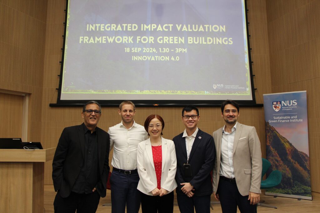 On 18 Sep 2024, SGFIN unveiled its whitepaper, “Integrated Impact Valuation Framework for Green Buildings,” at an event featuring industry and academic leaders. Prof Zhang Weina provided a comprehensive overview, highlighting the whitepaper’s holistic framework which integrates 13 established building standards and utilization of the IROI (Integrated Return on Investment) methodology, which evaluates economic, environmental, social, and governance (EESG) factors alongside traditional financial metrics. The panel discussion that followed further underscored the critical role of policy changes and societal recognition of sustainability in maximizing the framework’s potential impact.
